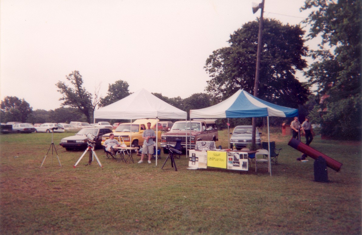 The observing field at the 1996 Okie-Tex featuring Fred Rayworth's "Barney Scope". Photo credit, Tony Labude, Sr. |