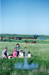 Some members passing time before sunset with a bit of model rocketry. This photo was taken at the "Crop Circle", a long time club dark sky party location. Photo credit, Kevin Davis. |