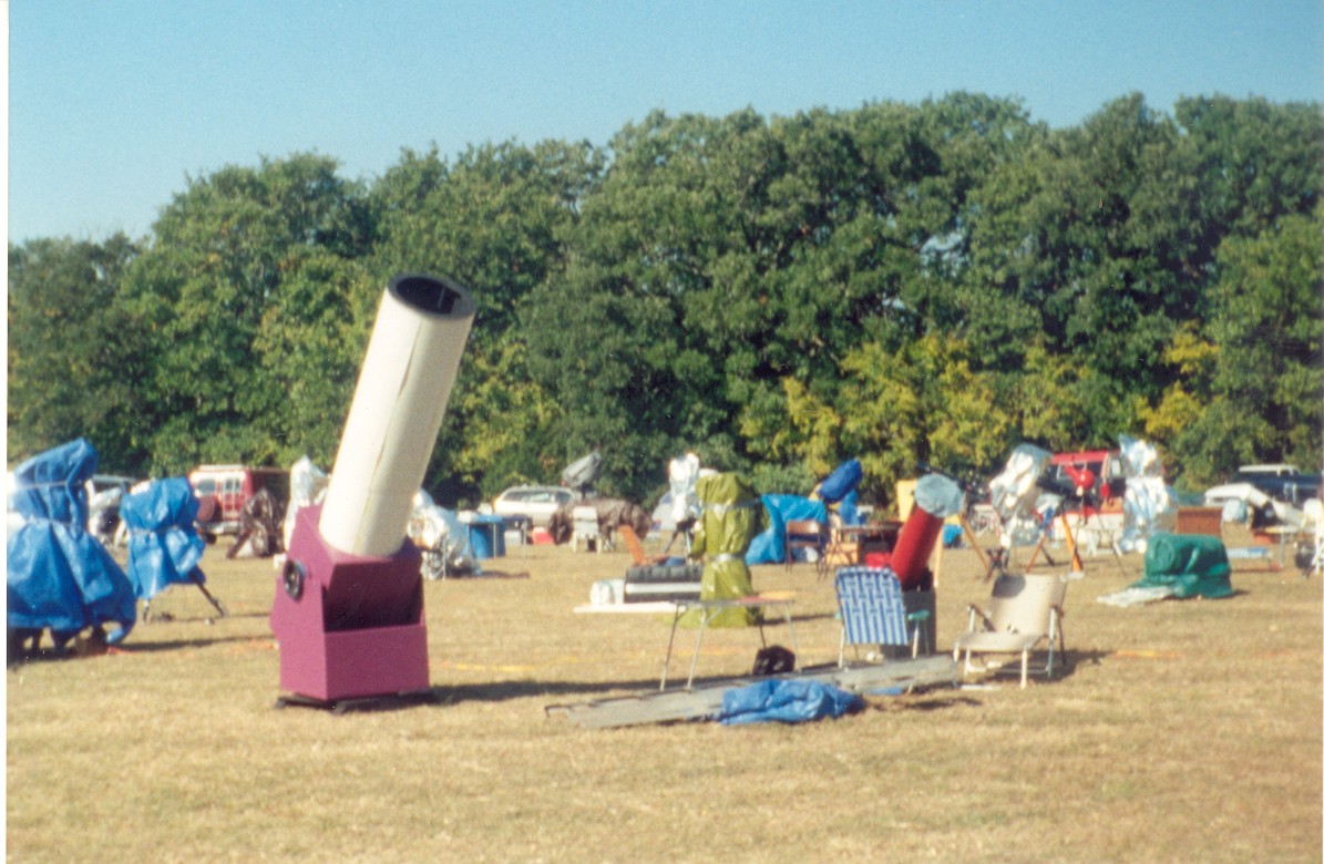 The observing field at the 1996 Okie-Tex featuring Fred Rayworth's "Barney Scope". Photo credit, Tony Labude, Sr. |